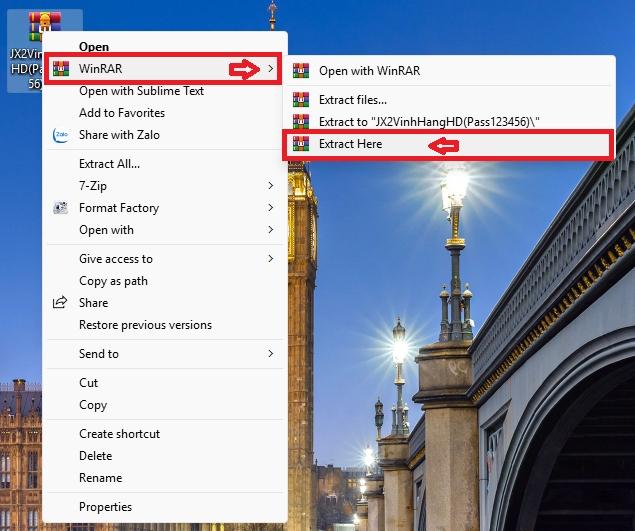 - Nhân Sĩ Giải Nén File Click chuột phải vào file JX2VinhHangHD(Pass123456)